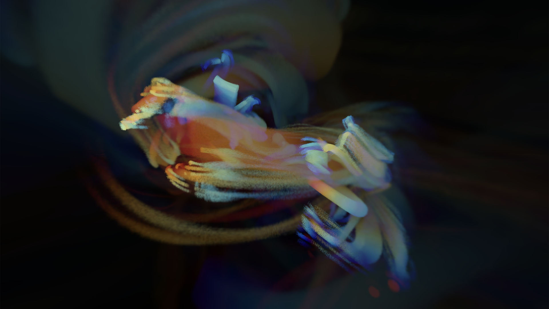 Ethereal Echoes is a meditative animated screensaver that transforms your screen into a world of abstract light forms and fluid streams of color. Against a dark background, a gentle dance of semi-transparent lines and volumetric strokes of light unfolds, as if responding to one another and creating a sense of depth and spatial resonance. Colors softly transition from cool blues and turquoise hues to warm flashes of amber and red, forming a living, breathing composition. The animation evolves slowly and organically, without sharp movements, making the screensaver perfect for moments of rest or pauses during work. It feels as though music is being visualized on the screen, or the echo of invisible waves spreading through space. Ethereal Echoes does not distract but instead soothes the eye, helping you relax and restore focus. The screensaver scales correctly to any screen resolution, maintaining clarity and expressiveness on both standard and ultra-wide displays. It is more than a background animation — it is an atmospheric visual canvas that turns your screen into a source of calm, inspiration, and subtle digital poetry.